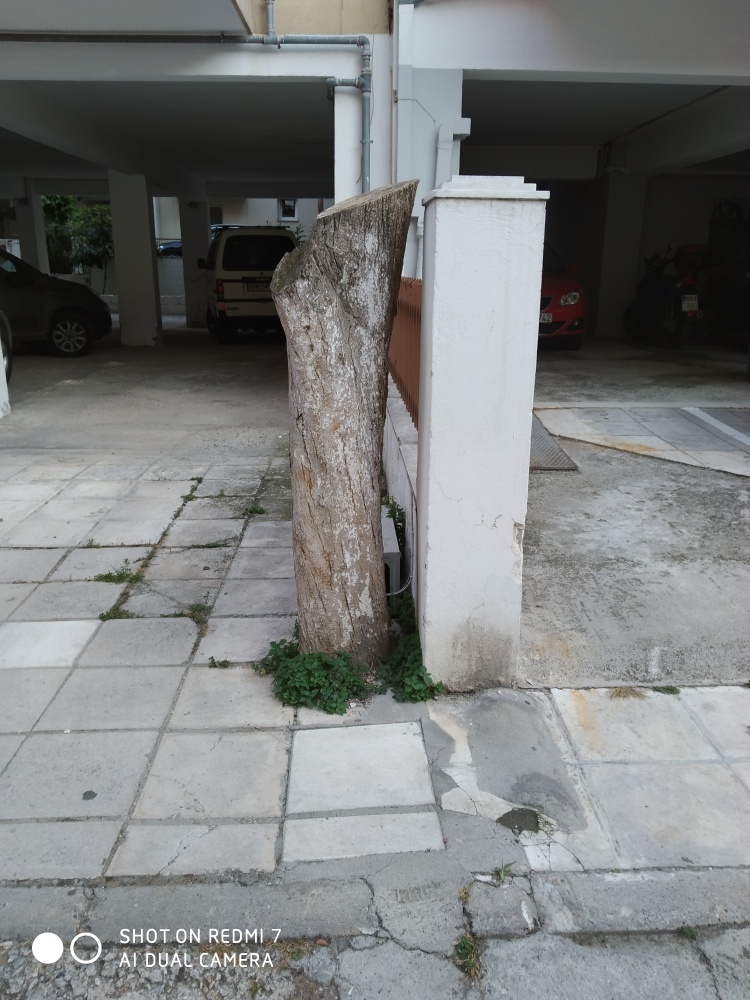 το σημείο έχει ελεγχθεί. το πρέμνο βρίσκεται μέσα σε ιδιοκτησία. υπεύθυνοι για την εκρίζωσή του είναι οι ιδιοκτήτες του χώρου.