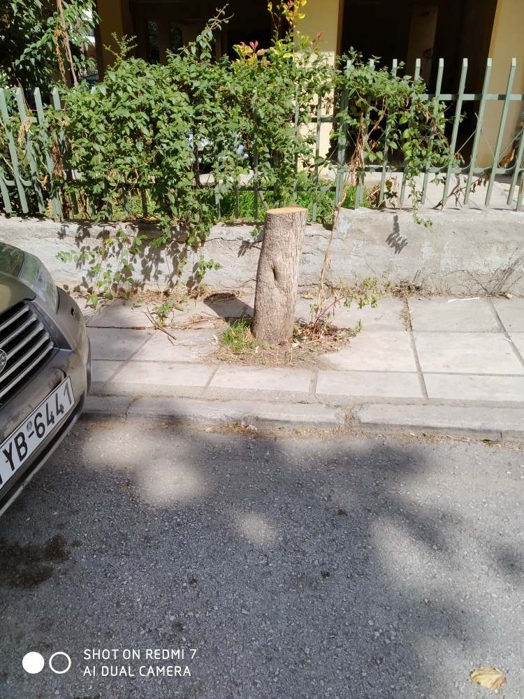 το πρέμνο βρίσκεται ήδη στην λίστα εκριζώσεων πρέμνων από τα πεζοδρόμια του Δήμου, εργασία η οποία θα τρέξει χρονικά μετά τον Γενάρη του 2023. Ευχαριστούμε για την υπόδειξη.