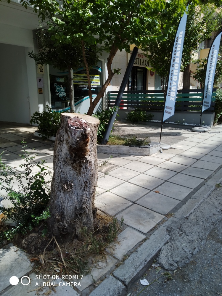 το πρέμνο βρίσκεται ήδη στην λίστα εκριζώσεων πρέμνων από τα πεζοδρόμια του Δήμου, εργασία η οποία θα τρέξει χρονικά μετά τον Γενάρη του 2023. Ευχαριστούμε για την υπόδειξη.