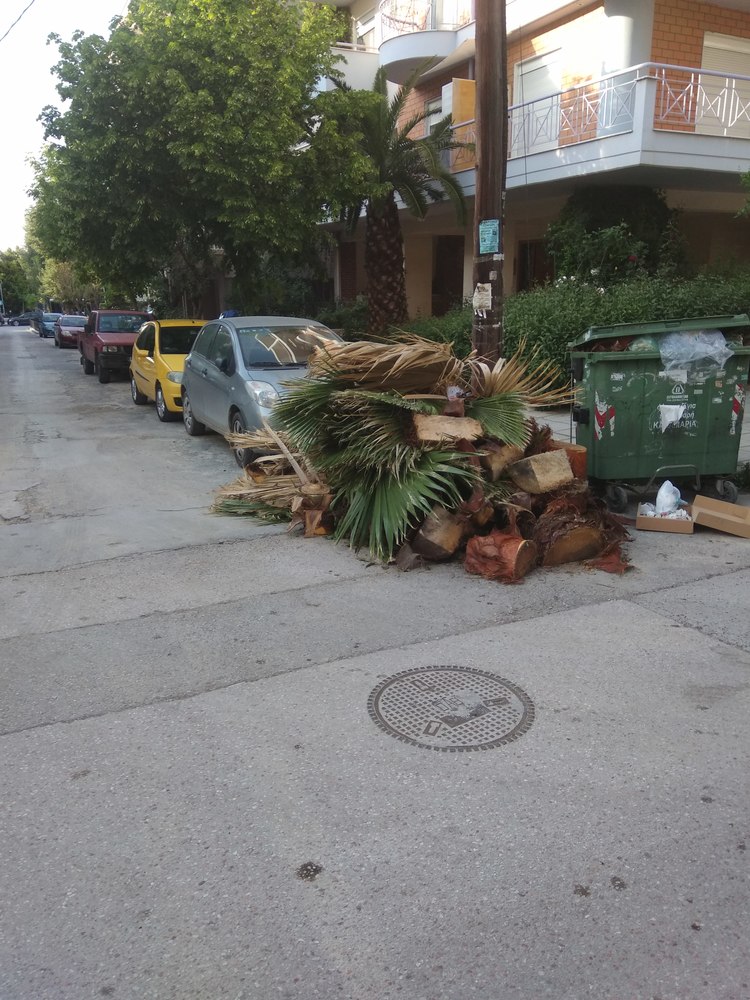 Κλαδιά δέντρων στον δρόμο δίπλα σε κάδο Καραβαγγέλη και Αν. Θράκης στο Βότση