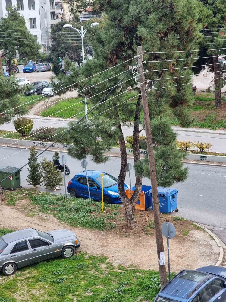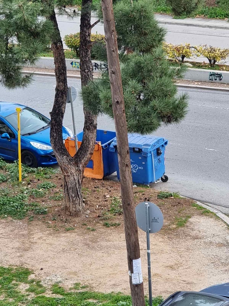 2 μπλε καδοι ειναι επανω στον δρόμο και αυτος που βγαίνει απο την Δαρδανελλίων δεν εχει ορατότητα . Κίνδυνος τροχαιου. |