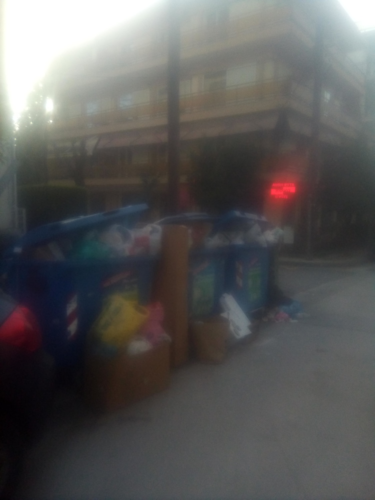 Σας έχω αναφέρει εδώ και 6 μήνες την εικόνα που παρουσιάζει η γωνια Νίκαιας και Χάλκης από Παρασκευή έως Δευτέρα λόγω μη αποκομιδής των απορριματων και μου απαντήσατε ότι ο επόπτης τα βρήκε όλα εντάξει.Σας στέλνω και φωτογραφίες.Ετσι εννοεί την καθαριότητα ο δήμος;Σκοπεύετε να κάνετε αποκομιδή τα σαββατοκύριακα η προτιμάτε να μοιράζετε φασολάδες τα κούλουμα;Είναι θέμα πολιτισμού και δημόσιας υγείας.
