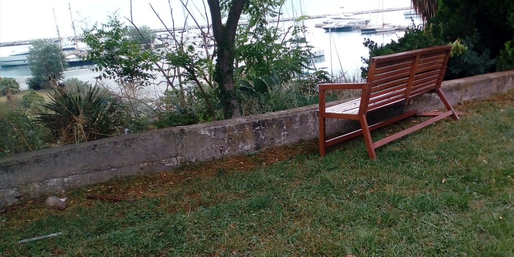 | Περιγραφή | Παρατημένο παγκάκι εδώ και καιρό, τώρα και σπασμένο! |