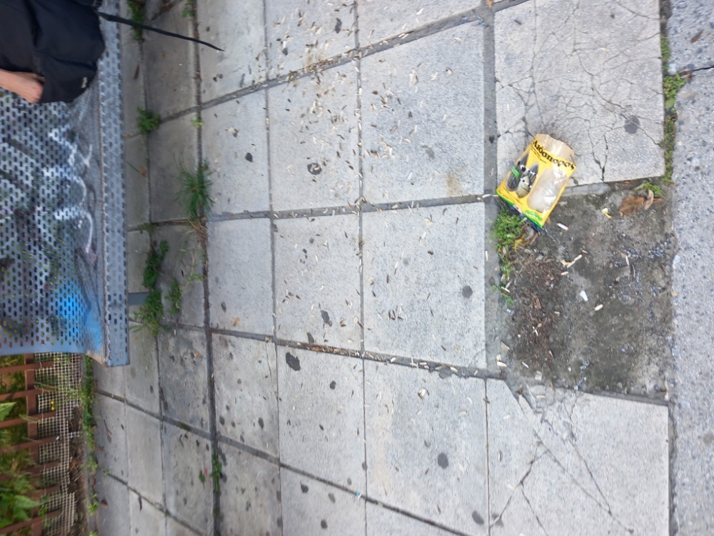 Μπροστα στην σταση του λεωφορειου 2 πλακες κατεστραμενες