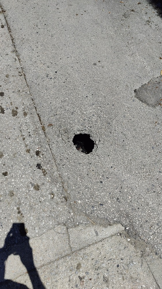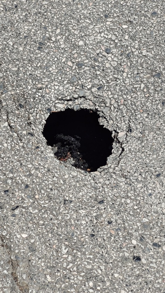 Εχει ανοιξει οπη στο οδοστρωμα και απο κατω φαινεται "κουφιο". Απο εχθες έως σήμερα η οπη εχει μεγαλωσει και πλεον υπάρχει κίνδυνος πλήρους καθίζησης του σημειο απο το βαρος των διερχόμενων αυτοκινητων με αποτελεσμα σοβαρη ζημια σε αυτά