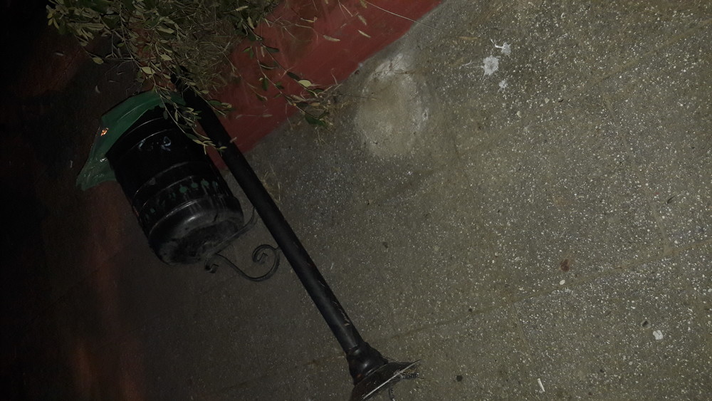 | Περιγραφή | Στην Πλαστήρα στο ύψος της πλατείας Σκρα υπάρχει ένα ξεβιδωμένο πεσμένο καλάθι απορριμάτων. |