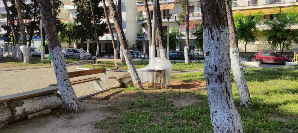 | Περιγραφή | Ενώ ο δήμος είχε πετάξει τις προηγούμενες καρέκλες και τραπέζι που ήταν αφημένα στο πάρκο από τρίτους έφεραν και άλλα. |