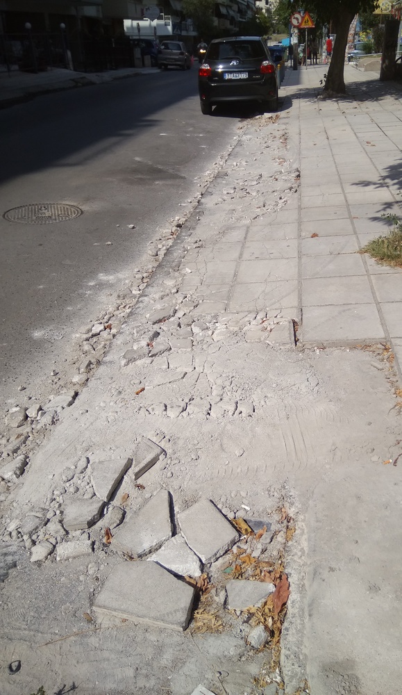 | Περιγραφή | Πριν μήνες είχαμε κάνει παράπονα για αλλαγη στα πλακάκια στο πεζοδρόμιο στην εφεσσου 7 νέα Κρηνη λόγω ότι έχουν σπάσει όλα τα πλακάκια. Δίπλα έχει τρια μαγαζια που πανε κάθε μέρα πολλά άτομα στάση λεωφορείου και σχολείο δηλαδή περνάν πάρα πολλά άτομα και μπορεί να χτυπήσει κάποιος. Τα πλακάκια σπασμένα και τα θριψαλα πεταμένα δίπλα. Ένας δεν υπάρχει να σκουπίζει τόσους μήνες? Όλη η εφεσου γενικά είναι μέσα στα σκουπίδια |