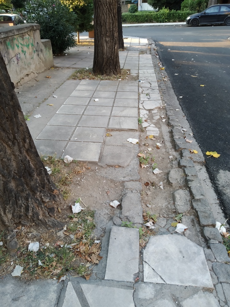 | Περιγραφή | Σπασμενες πλακες πεζοδρομίου και ταυτόχρονα λειπουν κομμάτια απο πλάκες |