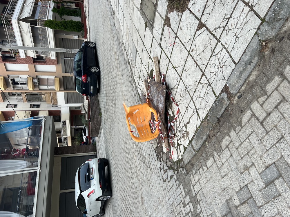Διασταύρωση Ρίτσου με Ελύτη υπήρχε ένα μεταλλικό καπάκι εκεί που τώρα είναι η καρέκλα . Αυτό έσπασε από φορτηγό που ξεφόρτωνε στο γιαπί απέναντι ! Ο εργολάβος έβαλε αυτά που βλέπετε πάνω από την τρύπα που δημιουργήθηκε για να μην πέσει κάνεις μέσα ! Εδώ και τρεις βδομαδες υπάρχει αυτή η τρύπα με μέτρο προστασίας μια πλαστική καρέκλα !