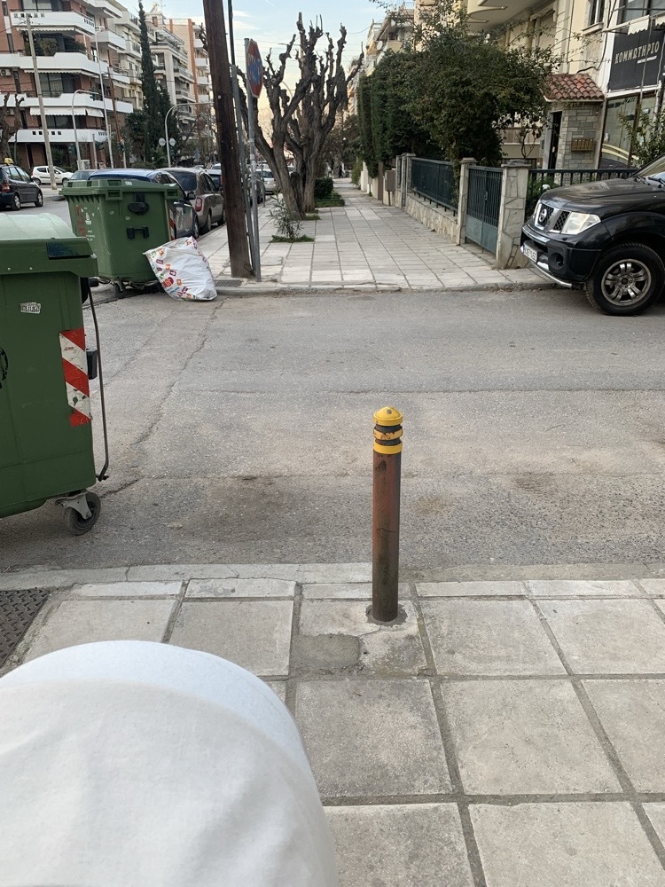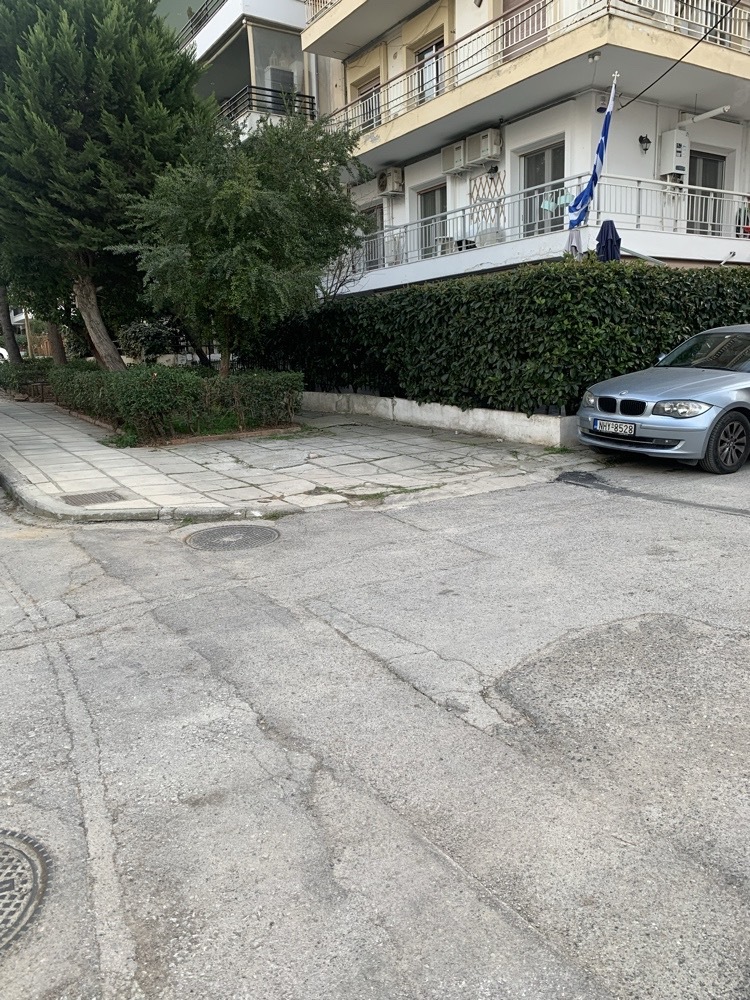 στο σημείο είναι κατεστραμμένο το πεζοδρόμιο και δεν υπάρχει ράμπα. είναι με κλίση (σαν ράμπα) αλλά δεν το αντιλαμβάνονται οι οδηγοί και παρκάρουν πάνω. στην συγκεκριμένη διασταύρωση δεν υπάρχει πουθενά αναπηρική ράμπα. Αργοναυτών με Παπαδημητριου