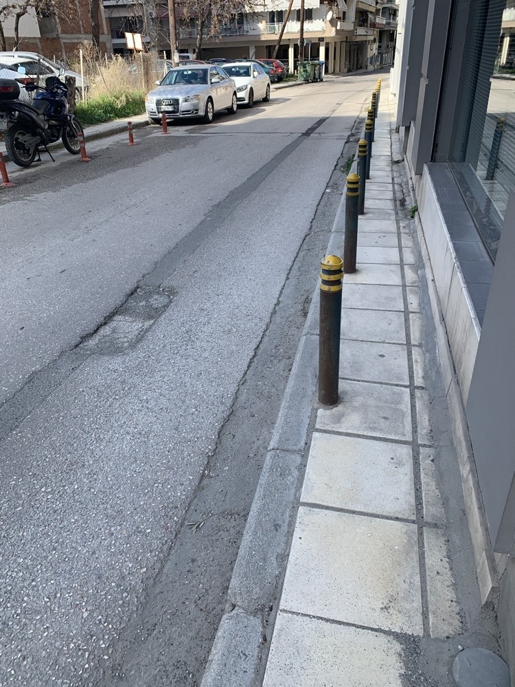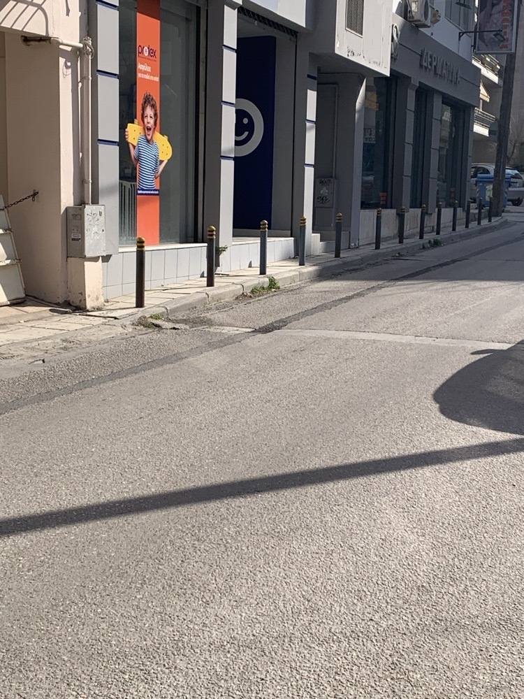 | Περιγραφή | σε πεζόδρομο πλάτους μισού μέτρου έχουν τοποθέτησει κολωνακια με αποτέλεσμα όλοι οι πεζοί μικρά παιδιά, μαμαδες με καρότσια, να κατεβαίνουν στο οδόστρωμα σε οδό με μεγάλη κυκλοφορία |