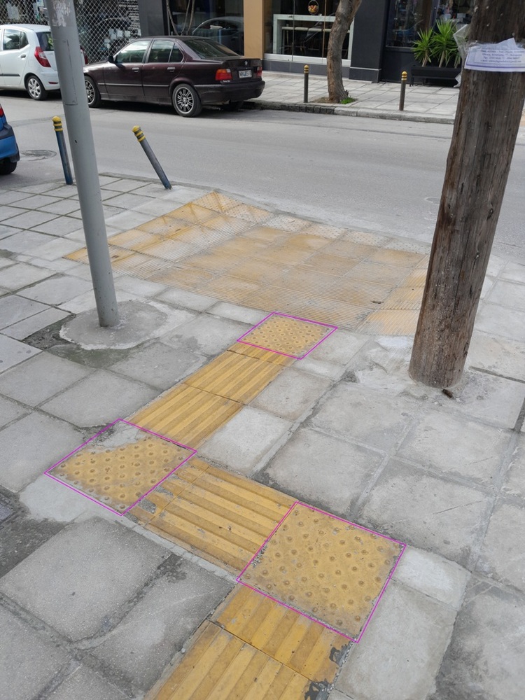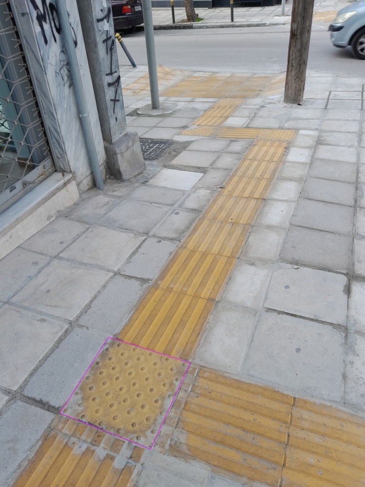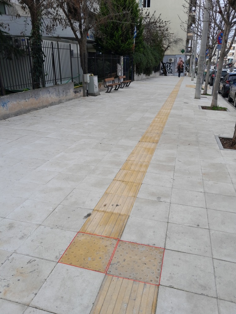 Εντός των κόκκινων γραμμών απουσία της απαιτούμενης πλάκας ΑΜΕΑ κι επιδιόρθωση όλων των κίτρινων πλακών ΑΜΕΑ της ράμπας, λόγω λάθους στον τύπο τους.