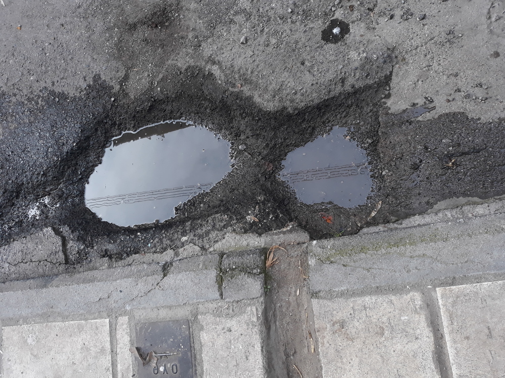 Στην Οδό Θουνυδίδου μεταξύ Σουρή και Κρυστάλλη το οδόστρωμα έχει αυτήν την λακούβα με αποτέλεσμα να κινδυνεύουμε κατά το παρκάρισμα να έχουμε φθορές στα αυτοκίνητα ή τα ελαστικά.
