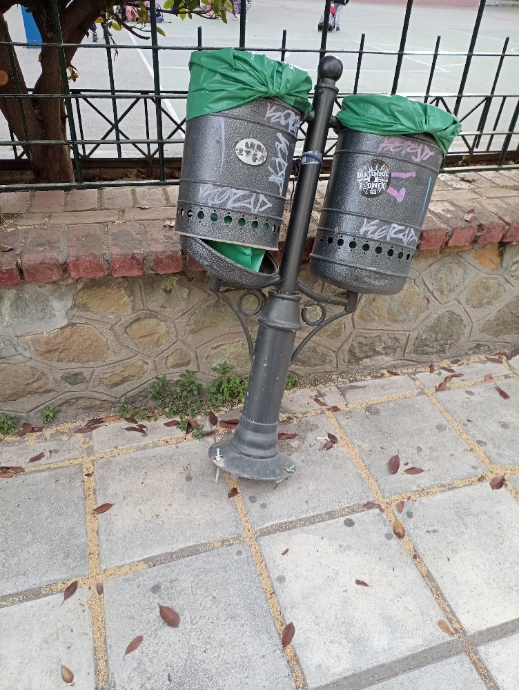 | Περιγραφή | Ο κάδος έξω από το 6ο Δημοτικό σχολείο Καλαμαριάς έχει ξηλωθεί και είναι σπασμένος ο πυθμένας του. |