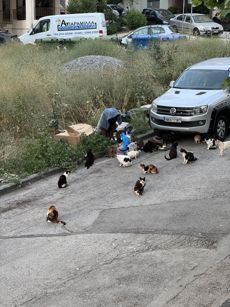 | Περιγραφή | Εδώ κ χρόνια επί της οδού Πίνδου στη Νέα Κρήνη συγκεκριμένη και γνωστή σε όλους κυρία συντηρεί και ταΐζει εις βάρος μιας ολόκληρης γειτονιάς πάνω από 30 γάτες.