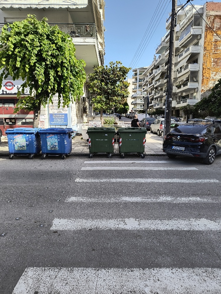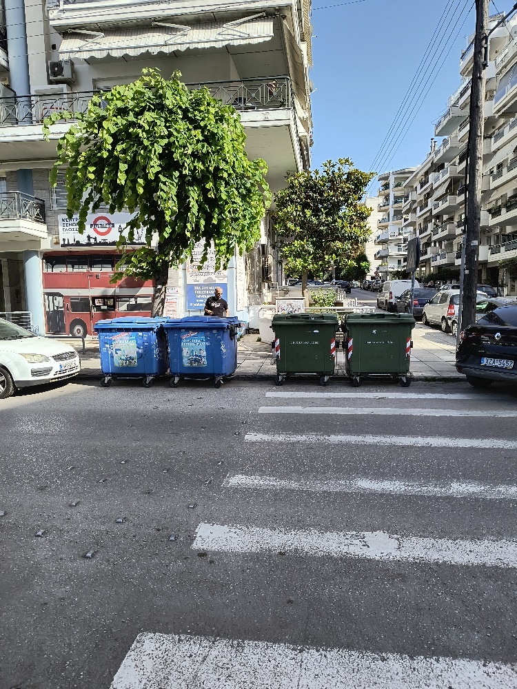 | Περιγραφή | Έξω από το 11ο Δημοτικό Σχολείο Καλαμαριάς οι κάδοι έχουν μετακινηθεί για να παρκάρουν αυτοκίνητα και τοποθετήθηκαν ακριβώς πάνω στη διάβαση. Σε δρόμο με μεγάλη κίνηση πεζών, ιδιαιτέρως εκατοντάδων παιδιών ή γονέων και παππούδων που πηγαίοερχονται στο σχολείο το πρωί και το μεσημέρι. Να τοποθετηθούν άμεσα κολωνάκια οριοθέτησης της θέσεως των κάδων αλλιώς οι υπηρεσίες του Δήμου θα είναι υπεύθυνες σε περίπτωση ατυχήματος!!! |