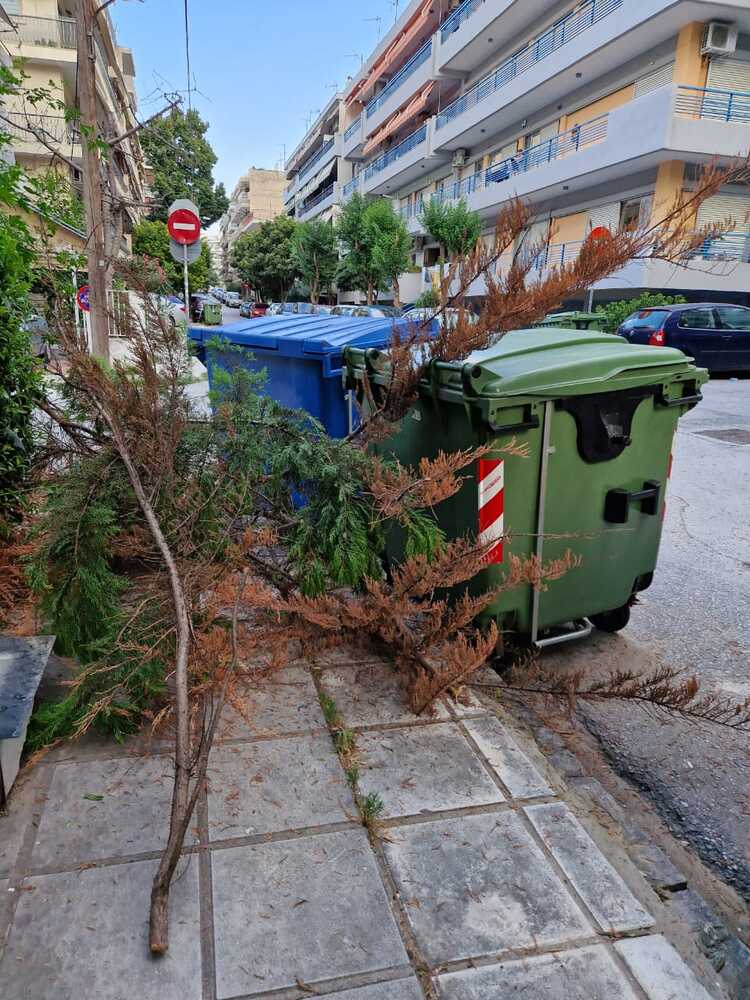 Αποκομιδή κλαδιών από πεζοδρομιο Φαναρίου και Αντιγονης