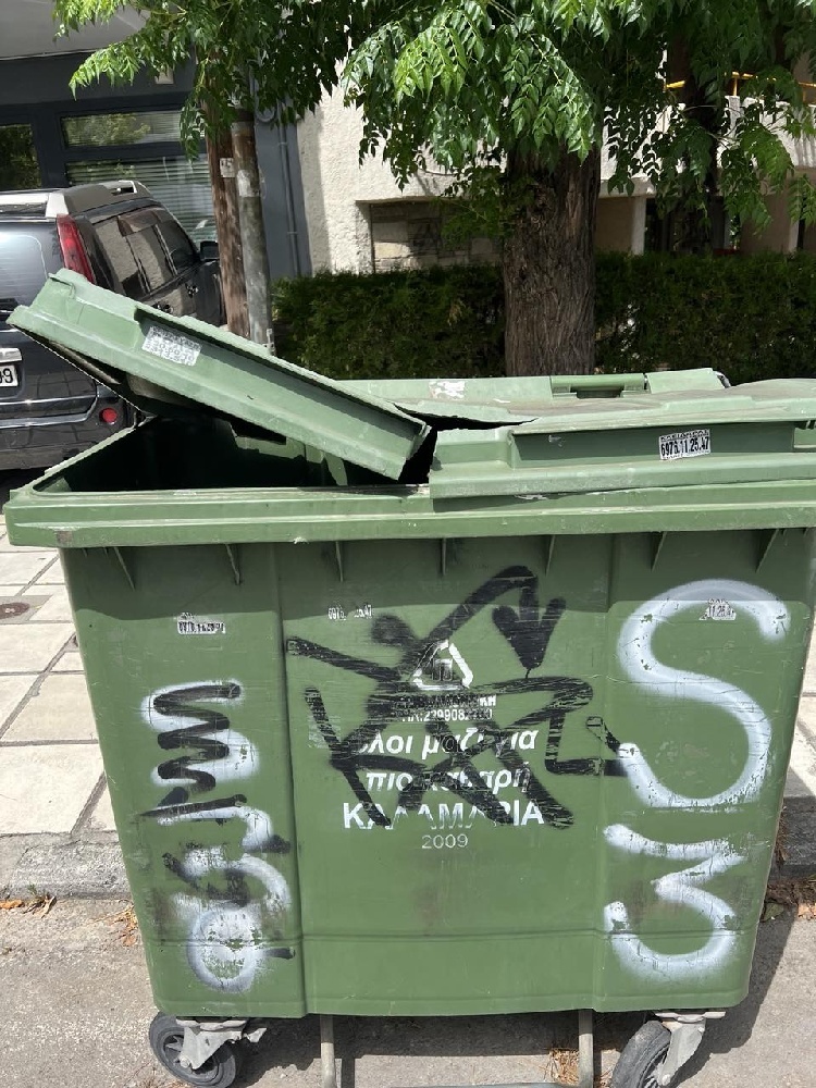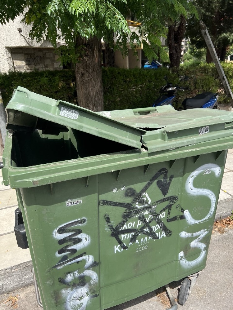Αρ. 28273: σπασμένο καπακι πράσινου κάδου σκουπιδιών Πόντου
