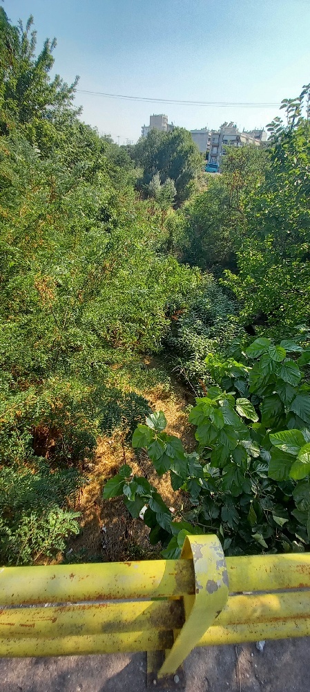 Κλάδεμα, ξήλωμα δέντρων και αποκομιδή σκουπιδιών και μπάζων στο ρεμα που περνάει κάτω από την συμβολή των οδών Καραβαγγέλη και Ποσειδώνος.