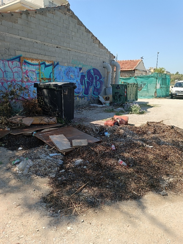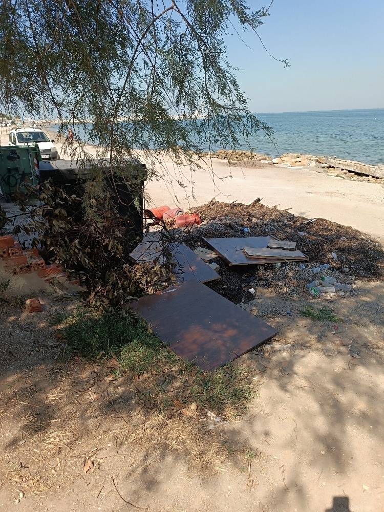 | Περιγραφή | Υπάρχουν δίπλα στον κάδο ξεραμένα φύκια και υλικά επιπλοποιίας |