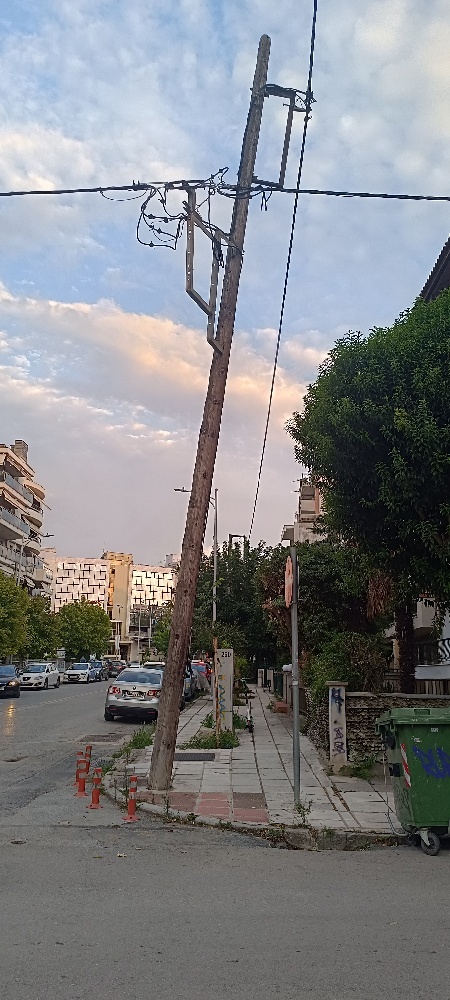 Στη συμβολή των οδών Μητρ. Καλλίδου και Καθηγητή Ρωσσιδη μια κολώνα της ΔΕΗ εμφανίζει κλίση και απαιτείται έλεγχος της στατικότητας της