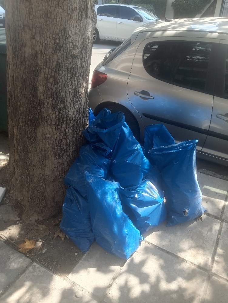 | Περιγραφή | Σήμερα το πρωί αλλάχτηκαν 4 πλάκες πεζοδρομίου με τα μπάζα να αφεθούν εντός και εκτός κάδου απορριμμάτων |
