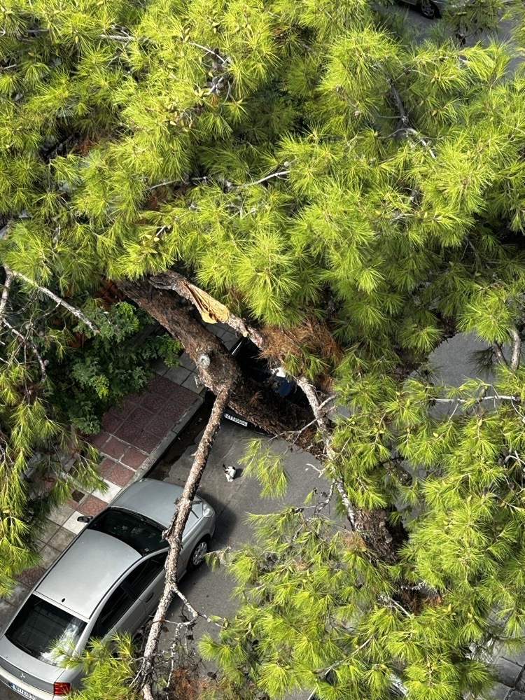 | Περιγραφή | Πρόκειται για ένα ψηλό μεγάλο κλαδί μερικώς κομμένο από ένα υψηλό πεύκο που βρίσκεται επι της οδού Προύσης 39 και έξω από την είσοδο της πολυκατοικίας που μένω |