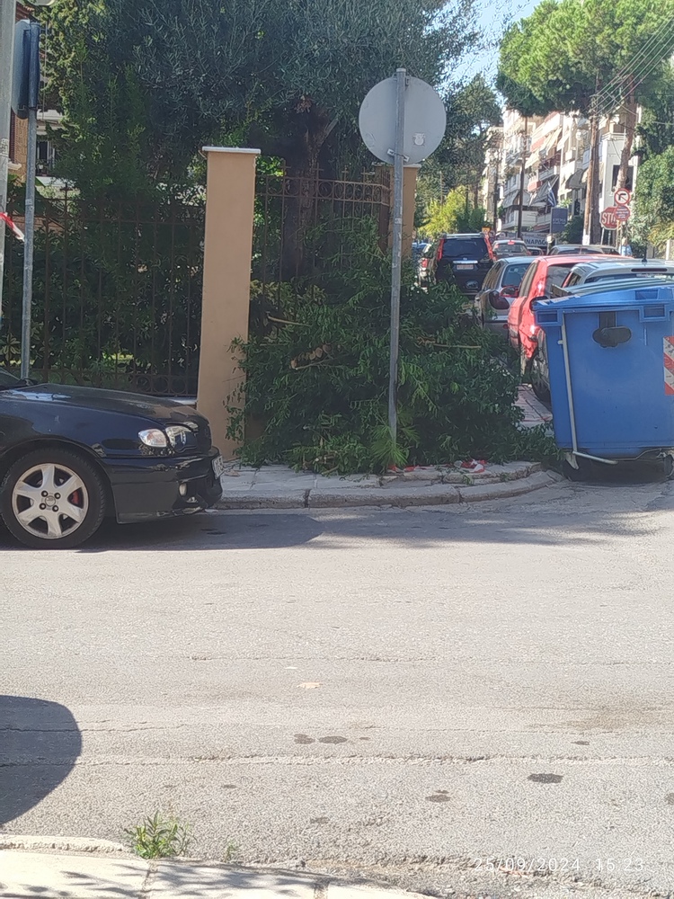 Στην Μακροχωρίου με Δρακοπούλου γωνία στους κάδους στην πίσω πλευρά κλαδιά σε στοίβα.