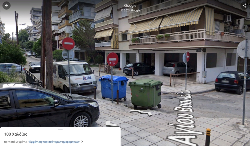 Υπάρχουν τρεις πινακίδες stop. Καλό είναι να αφαιρεθεί η μεσαία και να ελευθερωθεί το πεζοδρόμιο.