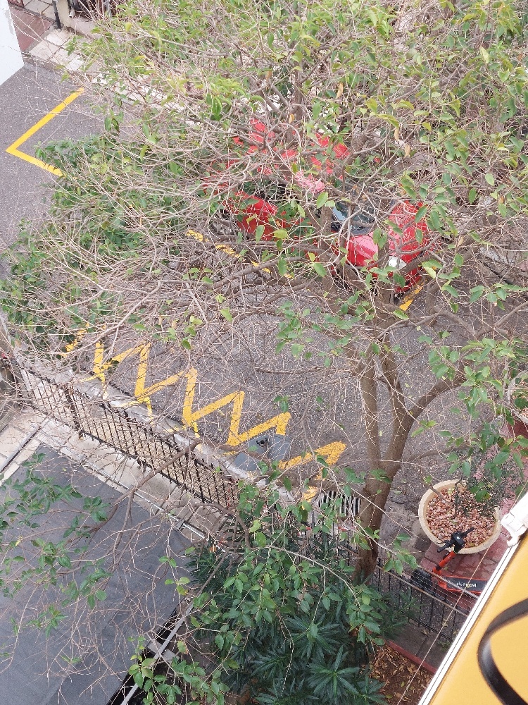 {τεθλασμένη κίτρινη γραμμή (ζιγκ-ζαγκ)} διότι υφίσταται νόμιμη άδεια στάθμευσης παρόδιας ιδιοκτησίας,