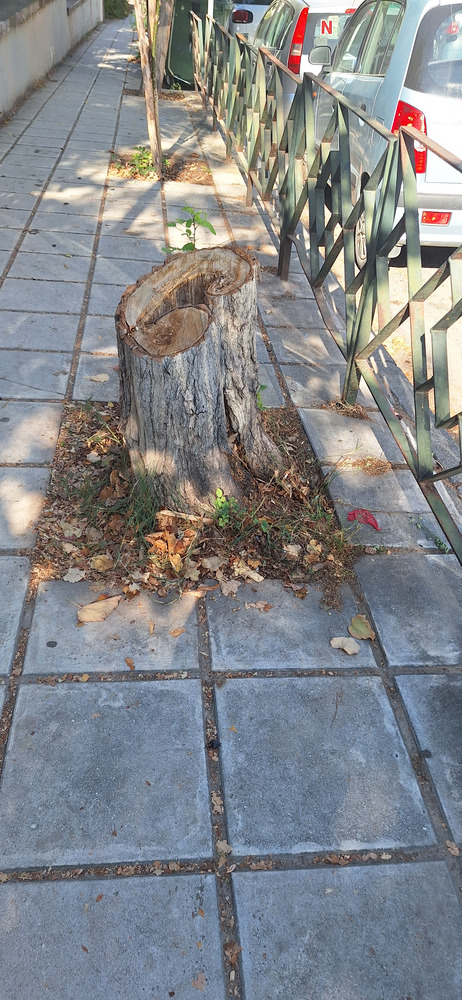 | Περιγραφή | Ξεραμενο και κομμένος κορμός. Να Φυτευτεί νέο δένδρο |