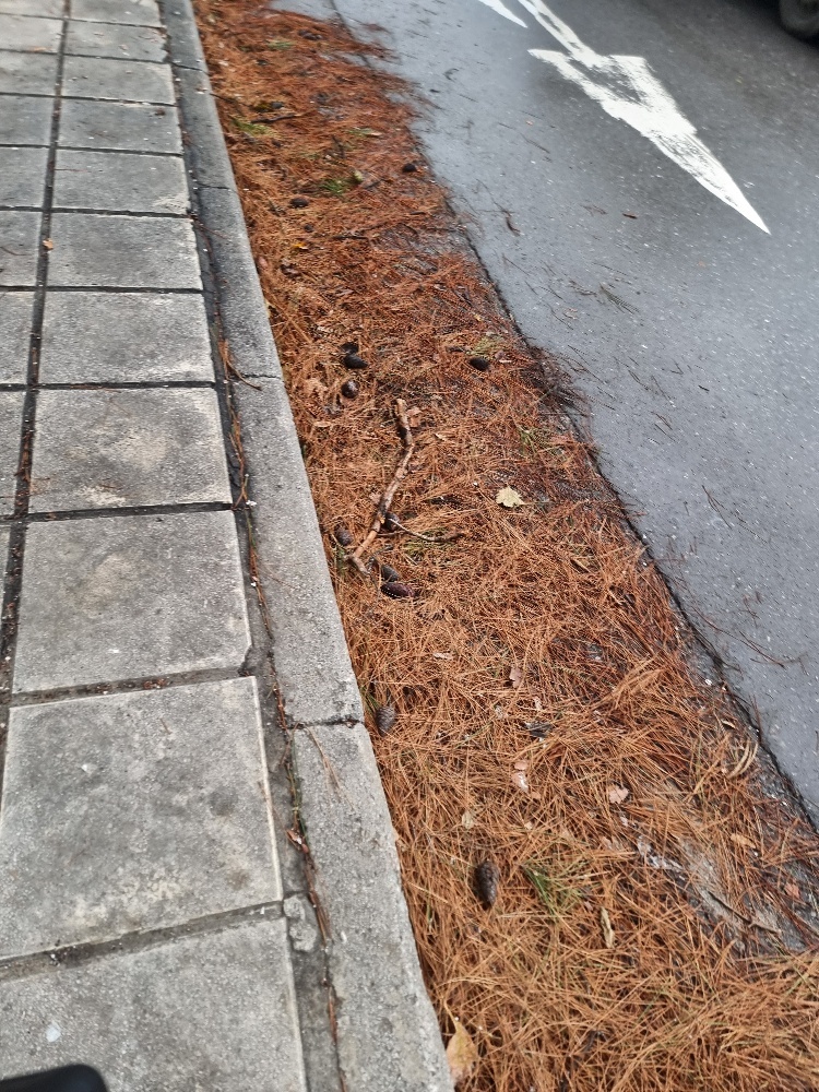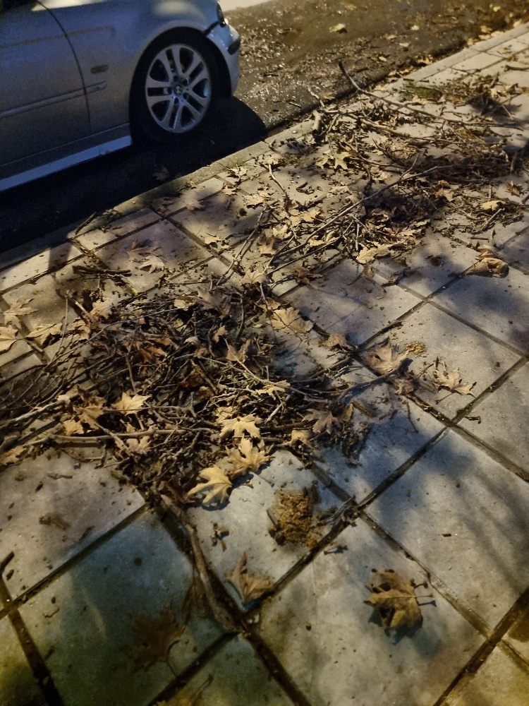 Συσωρευμενα φυλλα,κλαδιά κλπ,απο την κακοκαρια. Όλη η οδός Μ.Κυδωνιων από τα φανάρια της Αδριανουπόλεως μέχρι την Ίμβρο,