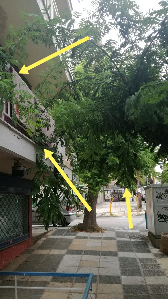 | Περιγραφή | Το δέντρο της φωτογραφίας βρίσκεται στη συμβολή των οδών «Ι. Πασσαλίδη» και «Βοσπόρου». Τα κλαδιά του εμποδίζουν τη φιέλευση των πεζών (εάν είσαι και ψηλός σκύβεις), ενώ κλαδιά έχουν επεκταθεί και σε μπαλκόνι παρακείμενης οικοδομής (φωτο). |