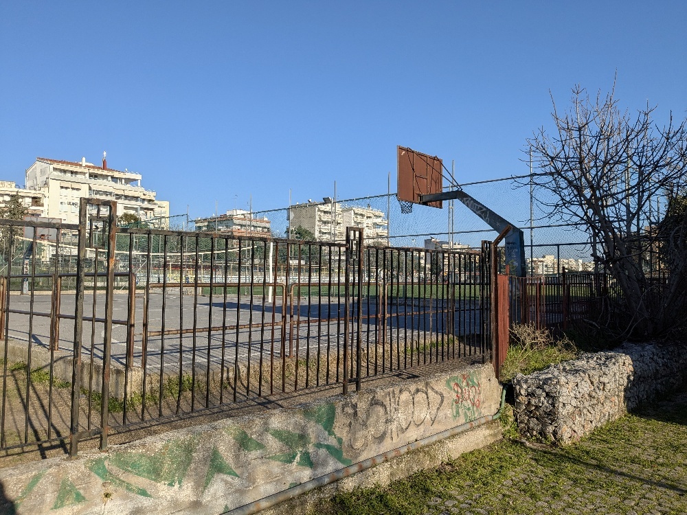 στο γήπεδο μπάσκετ διπλα στον Αριστοτέλη οι μπασκετες και τα καγκελα ειναι εντελως σκουριασμένα