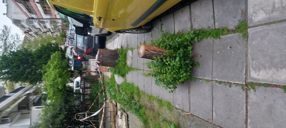 | Περιγραφή | Στο πεζοδρομιο αυτο υπαρχουν 2 κομμενα δενδρα εδω και αρκετο καιρο, πιθανον παραπανω απο 1 χρονο. Οι κορμοι εχουν κοπει περιπου στο 1 μ απο το εδαφος.