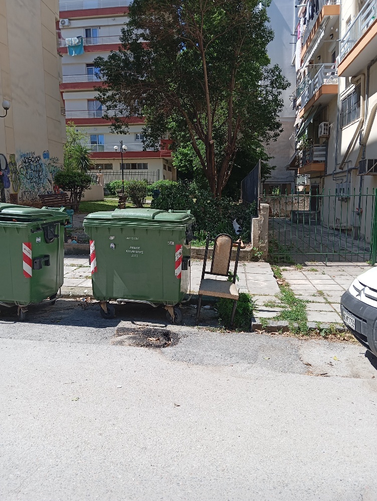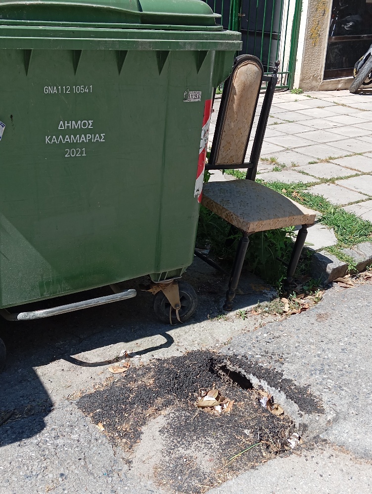 Δίπλα σε κάδο απορριμμάτων υπάρχει μια τρύπα που ενώ κλείστηκε πρόσφατα έχει ανοίξει ξανά