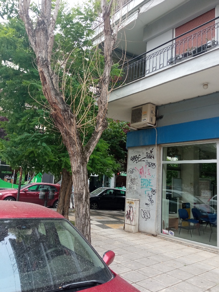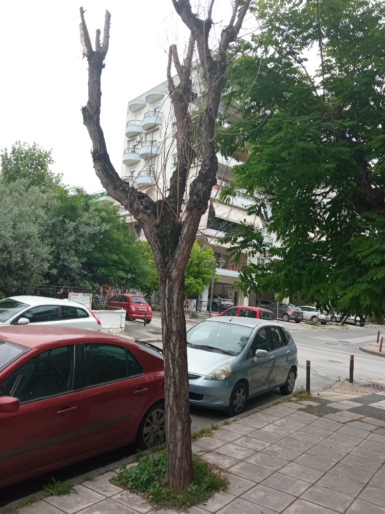 | Περιγραφή | Επικίνδυνο για πτώση δέντρο (λεύκα) πάνω σε αυτοκίνητα. |