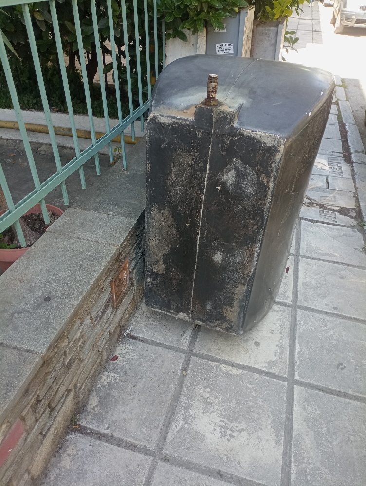 | Περιγραφή | δεξαμενή πεταμένη στο πεζοδρόμιο και δεν μπορούμε να περάσουμε |