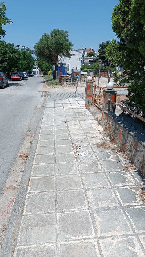 Φορτηγά βαρέα προκειμένου να μπουν στην εργολαβία στις οικοδομές που χτίζονται, ανεβαίνουν στο πεζοδρόμιο με αποτέλεσμα να διαλυθεί το πεζοδρόμιο. Υπάρχει και ένα μικρό μεταλλικό φρεάτιο. Ποιος και πότε θα αποκαταστήσει την βλάβη πριν σπάσουμε κάνα πόδι? Κανένας δημοτικός υπάλληλος που τα βλέπει αυτά δεν ενδιαφέρεται?????