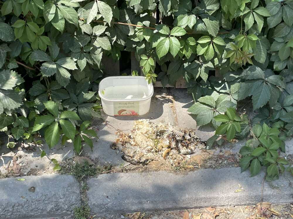 Σας επισυνάπτουμε φωτογραφίες που αποδεικνύουν την τραγική κατάσταση. Αποφάγια, κουπάκια με ξινισμένα γάλατα, ψωμιά, σκουπίδια, ψόφια ποντίκια. Περιττό να αναφέρουμε την έντονη δυσοσμία, η οποία θα επιδεινωθεί με τις υψηλές θερμοκρασίες που αναμένονται στο καλοκαίρι.
