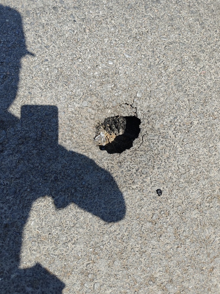 | Περιγραφή | υπάρχει μια τρύπα στην άσφαλτο και δείχνει ότι από κάτω έχει κενό. |