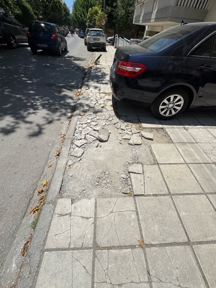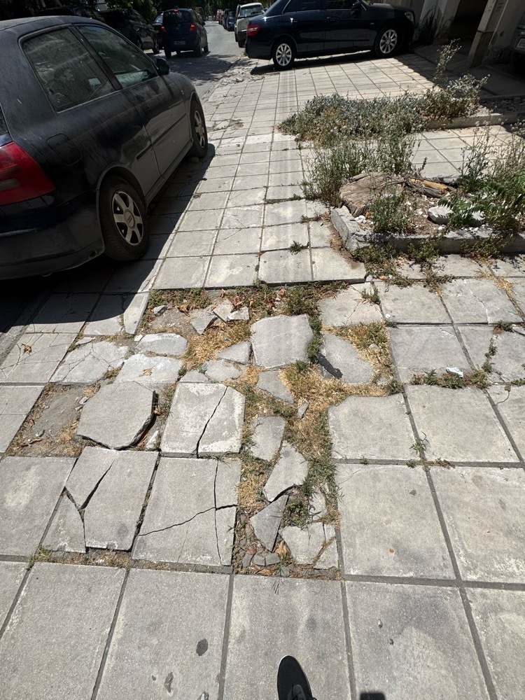 | Περιγραφή | Σπασμένες πλάκες πεζοδρομίου εδώ και χρόνια. Έχουν πέσει πολλοί άνθρωποι και τραυματιστεί. |