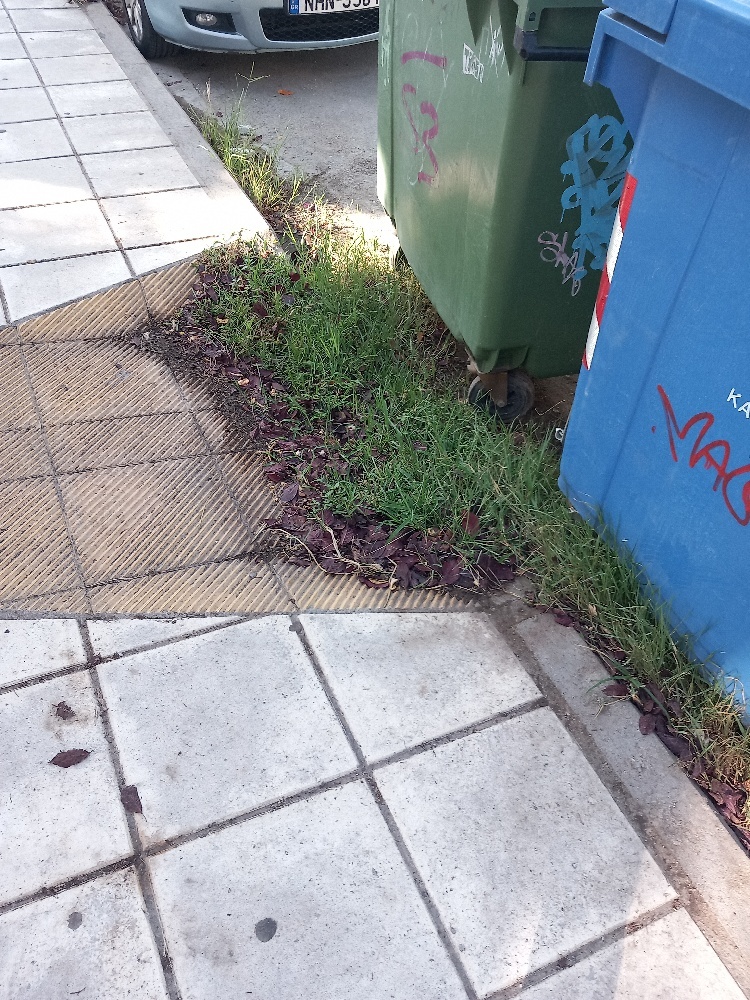 | Περιγραφή | Στο πάρκο της Παπανδρέου οι κάδοι των σκουπιδιών έχουν τοποθετηθεί με τρόπο ώστε να κλείνει η ράμπα. Αποτέλεσμα είναι να έχει χορταριάσει το σημείο και να συσσωρεύονται σκουπίδια που κλείνουν τη ροή των υδάτων προς τους υπονόμους που κατασκευάστηκαν μόλις πέρυσι. Ούτε η ράμπα χρησιμοποιείται, ούτε τα σκουπίδια βρίσκονται στο σωστό σημείο ούτε η συλλογή των ομβρίων είναι εφικτή. |