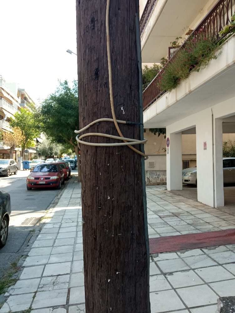 Σε κολώνα της ΔΕΗ υπάρχει καλοδιο τυλιγμένο πάνω και στο τέλος του μονωτική ταινία Τό καλοδιο δείχνει ότι είναι συνδεδεμένο