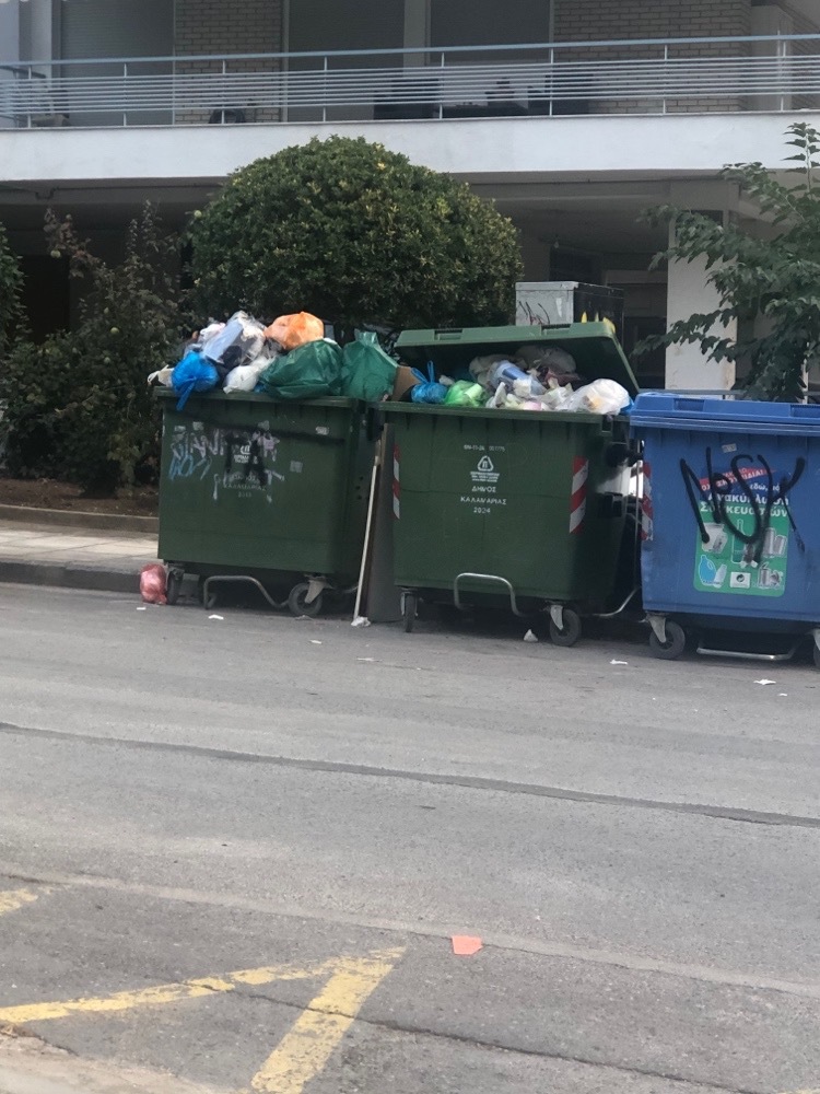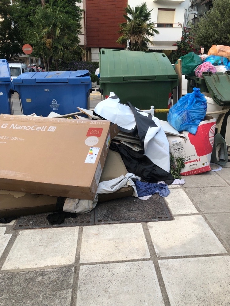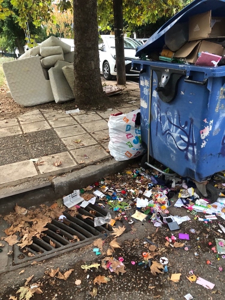 Θερμαικου γωνια με Γρηγοριου Ε μεχρι και μεσα στο Παρκο των Ροδων σκουπιδια και ογκωση αντικειμενα αμαζευτα για μερες