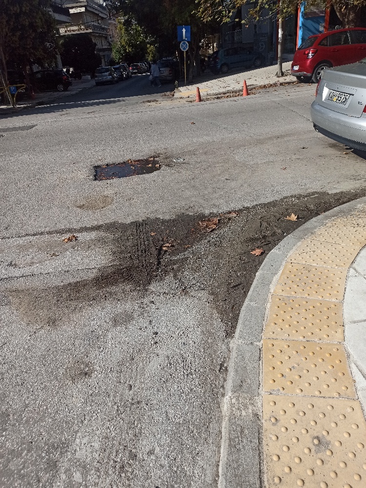 Υπάρχει πρόβλημα με τη κλίση του οδοστρώματος, αν δεν μπουν κολονακια θα πρέπει να διορθωθεί η κλίση στη διασταύρωση.
