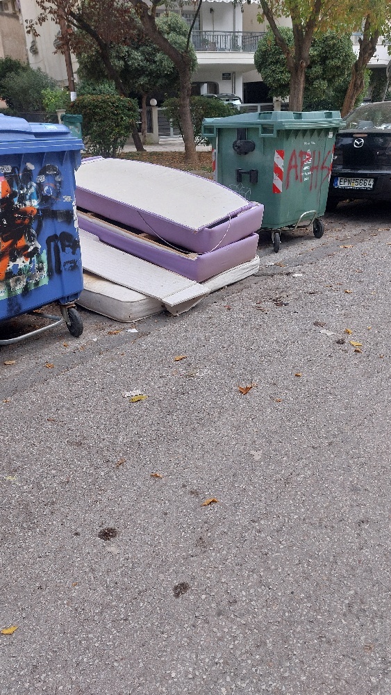 | Περιγραφή | Είναι παρατημένα εδώ κι εβδομάδες κάποια στρώματα και ταβλες καναπέ μάλλον δίπλα σε καδο μπροστά σε παιδική χαρά.προφανως ο ιδιοκτήτης δεν ενημέρωσε, η υπηρεσία καθαρισμού κι αποκομιδή περνά σχεδόν καθημερινά, δεν ενημερώνει ούτε αυτή!θα ήταν πολύ πρακτικό να ενημερώνουν άμεσα με ένα tablet πχ που θα δίνουν το στίγμα και να συλλέγονται άμεσα, διότι ακόμη παιδία δεν υπάρχει στους πολίτες, αλλά από ότι βλέπω κι οι υπάλληλοι του Δήμου δεν ενημερώνουν ώστε να καθαρίσει το μέρος μια ώρα αρχιτερα. |
