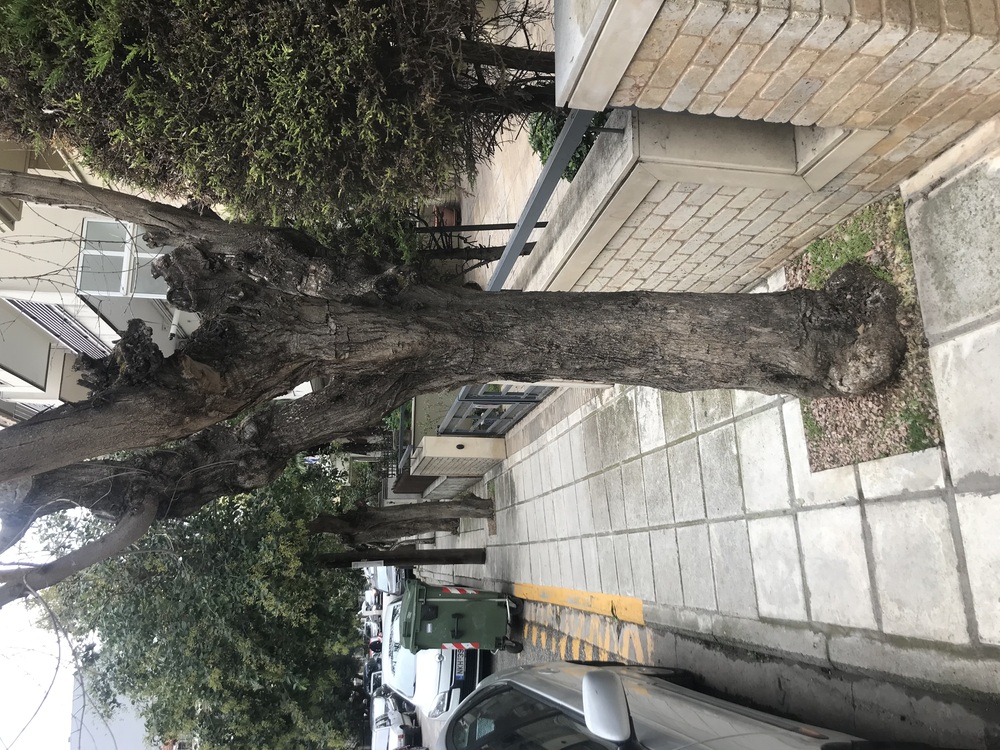 | Περιγραφή | Δέντρο στο πεζοδρόμιο μπροστά από είσοδο πολυκατοικίας έχει ξεραθεί και γέρνει προς τον δρόμο. Μπορεί να αποτελέσει επικίνδυνο για πεζούς και διερχόμενα οχήματα. Επίσης λόγω του στενού πεζοδρομίου, τα δέντρα εμποδίζουν την ασφαλή διέλευση των πεζών, οι οποίοι τώρα αναγκάζονται να περπατούν στον δρόμο. |