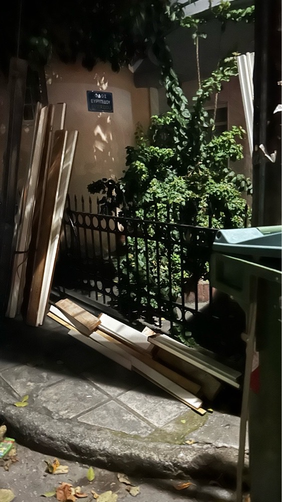 Παρακαλώ οπως απομακρυνθούν άμεσα. είναι στις δυο γωνιές Ευριπιδου με Πλούταρχου, δυσκολεύουν κατά πολύ τους πεζούς κ την διέλευση τους